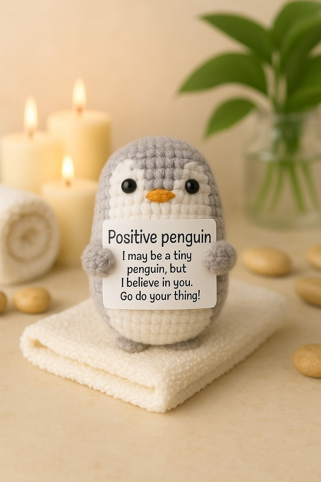 Wrapped in the calm of self-care, this tiny, crocheted companion brings big encouragement in the most adorable way. With its gentle expression and cozy spa-inspired setting, Positive Penguin is here to remind you: