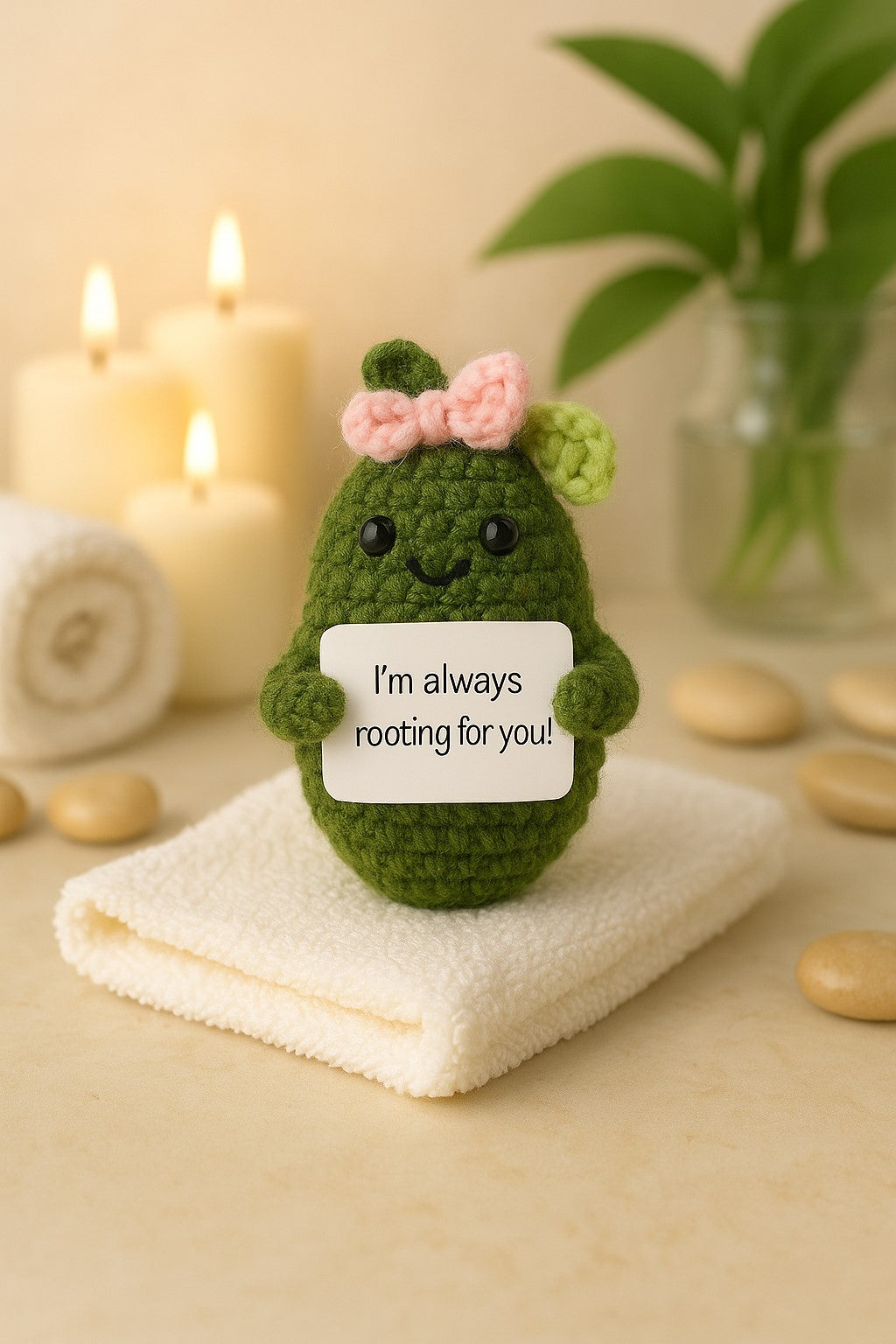 This sweet little pickle may be small in size, but she’s big on encouragement! With her cheerful smile, adorable pink bow, and leafy green sprout, she’s the ultimate companion for anyone chasing dreams, healing, or simply powering through the day.
