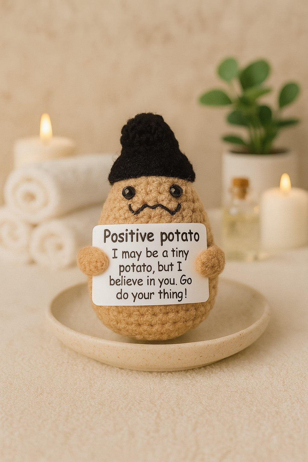 Don’t underestimate this tiny tuber! The Positive Potato is here to remind you that even the smallest spud can spark the biggest motivation. With a cozy beanie and a heart full of support, this adorable companion brings warm encouragement and playful vibes wherever it goes. Whether you're tackling a to-do list or simply needing a smile, the Positive Potato is your daily boost of "You got this!"