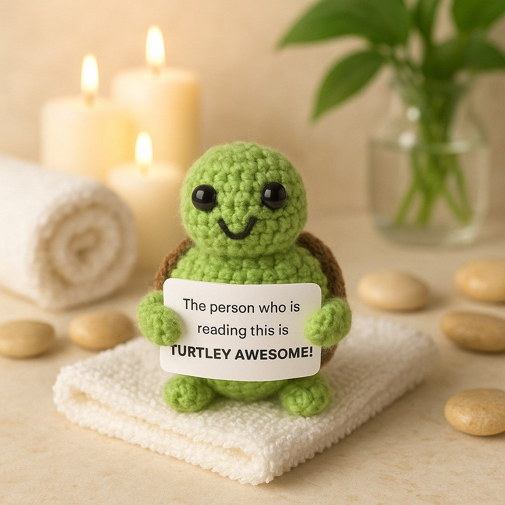 Slow and steady with a big heart, the Turtley Awesome turtle is here to remind you that being gentle with yourself is powerful. Hand-crocheted with a warm smile and cozy shell, this little guy carries encouragement wherever he goes.