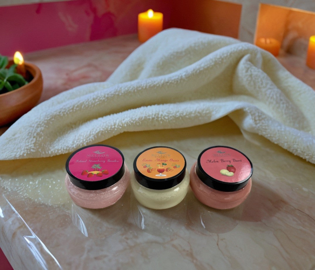 Exotic Mango Oasis – A juicy mango-infused scrub that nourishes and revives your skin with tropical sweetness.